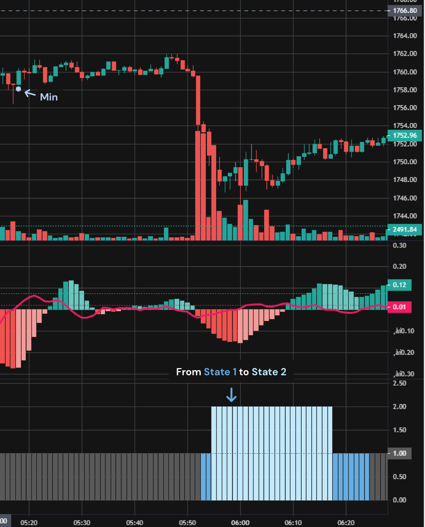 When Transition from State 1 to State 2: If a "max" or "min" point occurs in State 1, and subsequent market developments transition into State 2, it indicates a change in market structure. In this scenario, the predictive logic associated with "max" and "min" points will cease to apply.